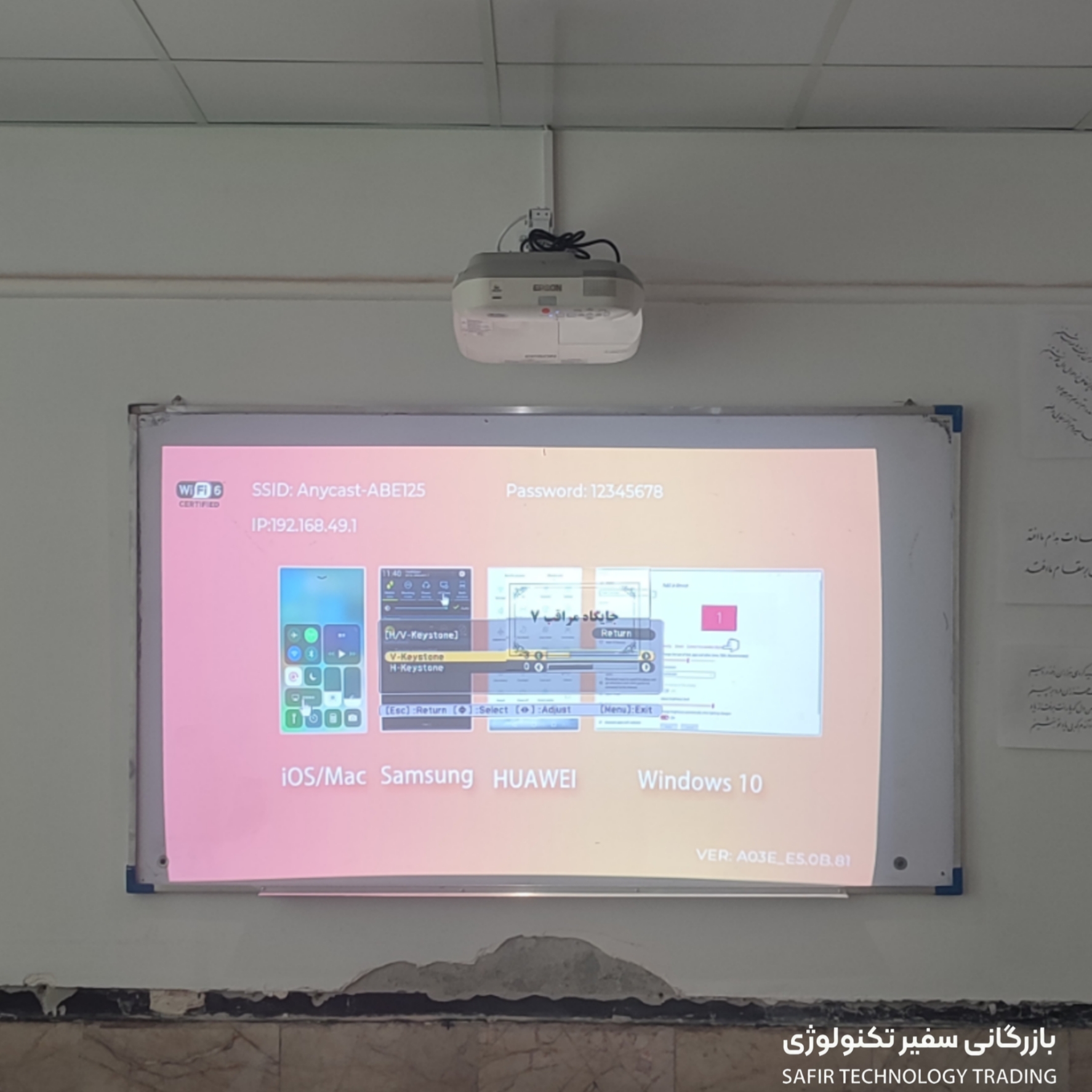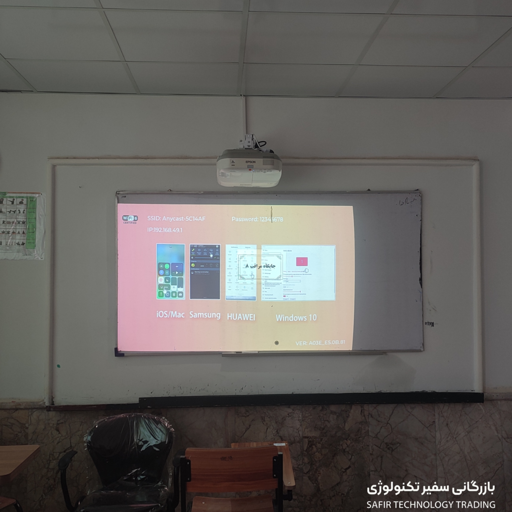 نصب و راهاندازی ویدئوپروژکتور تعاملی Epson 595Wi در مدرسه الزهرا گلبهار؛ همراه با گارانتی یکساله و خدمات کامل مشاوره، اجرا و پشتیبانی توسط شرکت سفیر.
